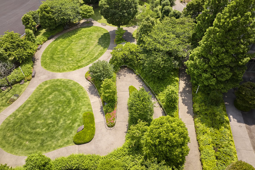 西館には、屋上庭園がございます。開放感があり、北東に筑波山、西にスカイツリー、富士山が見渡せます。