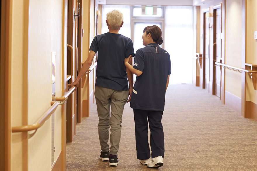 天井をながめているだけでは心が動かなくなります。起きていただくことで、寝たきりでは見ることができない、人々の豊かな表情、変わりゆく季節の風景を見て頂くことができます。そしてアクティビティケア、レクリエーションに参加していただき、その方の本来の心の豊かさを取り戻すためのケアの提供に努めています。また、起きることで横隔膜が下がり、寝ているときよりも深く呼吸をすることができます。体を支える筋力も回復し、身体機能の改善に繋がります。体力もつき肺炎などの合併症を防ぐことができます。